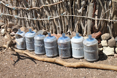 Les piles ont été rassemblées dans de gros bidons, en attendant une future collecte…