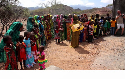 L’accueil près de la citerne se fait dans une ambiance de fête, les femmes sont heureuses du travail accompli.